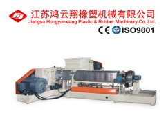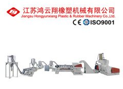 高填充母粒造粒机由江苏鸿云翔橡塑机械有限公司生产,高填充母粒主要以PP/PE为原料,碳酸钙填充,填充量能达到80%以上。物料经过密炼机充分塑化、分散后投入提升机后,通过锥双喂料机将物料强制喂入单螺杆,