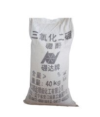 特性:硼酐为无色玻璃状晶体或粉末,无味,表面有滑腻感。在空气中能强烈地吸水生成硼酸,在高温时可被碱金属或镁、铝还原为单体硼。氧化硼可溶于酸、乙醇、热水,微溶于冷水,可与若干金属化合成具有特征颜色的硼玻