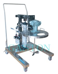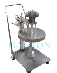 一、QD-A-SUS-D3推车式气动搅拌机概述;QD-A-SUS-D3推车式气动搅拌机附不锈钢盖,不锈钢盖上装有密封圈子,盖子可随气缸上升下降,可把搅拌桶压紧抱住,保证在搅拌时物料不飞溅,尘埃杂物不易