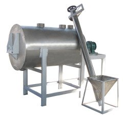 不锈钢混合机也叫卧式干粉混合机,混合机的工作过程是:各种组分的物料按配方比例经过计量后进入混合机,物料在带状螺旋叶片的推动下进行混合。外螺带将物料从一端推动,内螺带则使物料向相反的方向运动,里层物料被