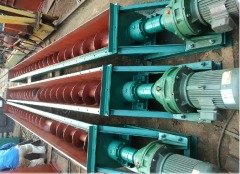 粉煤灰螺旋输送机旋转的螺旋叶片将物料推移而进行螺旋输送机输送,使物料不与螺旋输送机叶片一起旋转的力是物料自身重量和螺旋输送机机壳对物料的摩擦阻力。螺旋输送机旋转轴上焊的螺旋叶片,叶片的面型根据输送物料