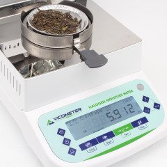 维科美拓牌水分测定仪采用卤素灯作为加热源,固俗称卤素水分测定仪,或者卤素灯水分测定仪。维科美拓VM-1S的工作原理为在灯泡内注入碘或溴等卤素气体,在高温作用下,升华的钨丝与卤素进行化学作用,升华的钨会
