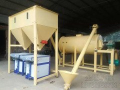 •性能特点•1.结构紧凑、占地面积小。•2.安装方便、无需打地脚线螺丝。•3.为了方便用户成品的包装在机械放料的机械放料的基础上,增加了简易计量出料,降低了工人的劳动强度。•4.双螺带结构混合方式,混
