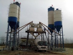 混凝土搅拌站是由搅拌主机、物料称量系统、物料输送系统、物料贮存系统、控制系统五大组成系统和其他附属设施组成的建筑材料制造设备,其工作的主要原理是以水泥为胶结材料,将砂石、石灰、煤渣等原料进行混合搅拌,