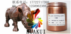广州华奎铜金属粉是一种浮型片状颜料,由一定比例的铜、锌和铝合金,经熔炼、球磨、分级到所需要的规格和效果而成。铜金粉的色相可分为黄金粉、青金粉、红金粉、紫铜粉、古铜粉等。我司供应的古铜粉又称紫铜粉及仿古