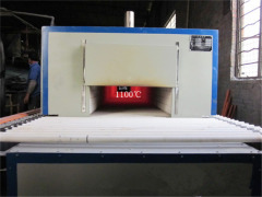 兴强炉业公司20米辊道窑炉,窑炉总尺寸为24000X1420X1500mm,传动为斜齿轮,辊棒(陶瓷管)直径40mm,电机为变频电机,发热件为电阻丝,分布在上下安装,使炉膛温度均匀,升温快,电器为自动