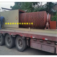 大型滚筒筛大型滚筒筛也叫转筒筛,筛面为带孔的圆柱形筒体或截头圆锥筒体,在转动装置带动下,筛筒绕轴缓缓旋转。固体废物由筛筒一端给入,被旋转的筒体带起,当达到一定高度后因重力作用自行落下,如此不断地起落运