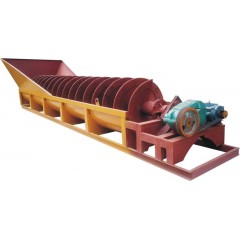 螺旋洗砂机是洗砂机的一种,主要通过设备内的螺旋装置对砂石料进行搅拌,从而使砂石料中的泥土与水进行混合,从设备上的流口排出,而砂石料则在螺旋装置的作用下被逐步筛选,从顶端的出料口排出,从而实现了砂石料的