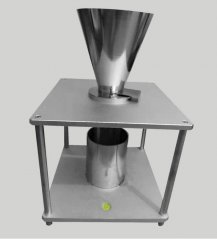 ZKWN-16913粉尘安息角测试仪原理:将堆满溢料盘的粉尘从漏斗口注入到水平料盘上;测量粉尘堆积斜面与底部水平面所夹锐角,即粉尘安息角。仪器结构(全套设备采用304不锈钢制造)(1)漏斗:(流出口直