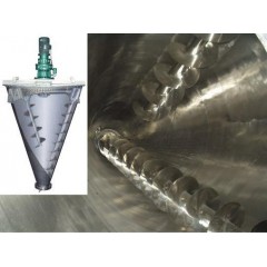 单锥双螺旋混料机该机由传动、螺旋、筒体、筒盖、出料阀及喷誉装置等部件组成。混合机两非对称螺旋的快速自转将物料向上提升,形成两股非对称的沿筒壁自下向上的螺柱形物料流。