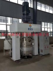 硅胶行星搅拌机产品说明:行星搅拌机是一种无死点集搅拌、混合为一体的高效混合设备。行星搅拌机有一个电机,釜内有两根或三根多层桨叶式搅拌器和一至两个自动刮刀,搅拌器在绕釜体轴线公转的同时,又以不同的转速绕