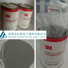 品名:3M反光粉规格:400目灰色3M反光粉的品特性:3M反光粉,又称高折射玻璃微珠,主要具有回归反射特性.所谓回归反射是一种光学现象,当光线照射到透镜之类的物体上,经折射后聚集,再从焦点反射又经透镜