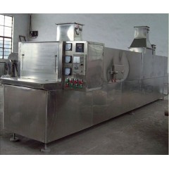 将所要处理的物料通过适当的加料机构,如星型布料器、摆动带、粉碎机或造粒机,分布在输送带上,输送带通过一个或几个加热单元组成的通道,每个加热单元均配有空气加热和循环系统,每一个通道有一个或几
