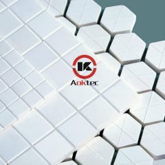 我公司生产的氧化铝小瓷片是石油、矿山、钢厂、电厂等行业物料输送设备或者液体流经管道表面的耐磨材料,主要作用是有效抗击物料经过时对管壁产生的冲击作用,化学物质的腐蚀作用和物料经过产生的热冲击作用,降低对