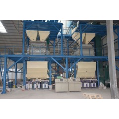 岳首机械干粉砂浆生产线成品仓及包装系统介绍:1、成品仓及二次混合系统成品仓和二次混合消除了纤维多、流动性差、颗粒料出现容易结桥和附着现象。该系统实现了快速,连续出料,对特种原料成品仓加上气浮装置能顺利