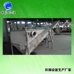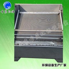 一、工作原理及构造:水力筛式固液分离机主体为由楔形钢棒经精密制成的不锈钢平面过滤筛面,待处理废水通过溢流堰均匀分布到倾斜筛面上,由于筛网表面间隙小、平滑,背面间隙大,排水顺畅,不易阻塞;固态物质被截留