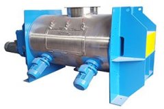 工作原理:卧式犁刀混合机由传动部件、搅拌器、圆形桶体、高速飞刀组成。搅拌器的犁头带动物料沿圆形简体作圆周流动的同时,还向犁头两边分,使物料在筒体内交错、对流,从而达到快速混合。中间的高速飞刀进行辅助混