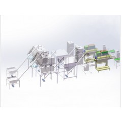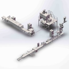 脱包输送→紫外线杀菌→输送→人工无尘投料→过筛→过度料斗缓存→负压输送→混合→暂存→负压输送→水平螺杆输送→大袋包装→封口→缝包→输送→倒包输送→袋整平→输送→重量检测→金属检测→输送→喷码→输送