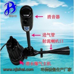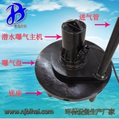 潜水曝气机用于污水处理厂的曝气池,曝气沉砂池,也可用于小型污水处理装置、工业废水处理和养鱼塘增氧。2、特点1)结构紧凑,占地面积小,安装方便。2)除进气口外,其余部分潜入水中,噪音小。3)吸入空气多,