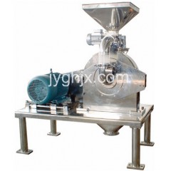 物料由料斗经螺旋输送器进入粉碎腔体,在高速旋转的刀片(针棒)与固定齿圈之间撞击、剪切、研磨而被粉碎,粉体通过筛网排出机腔,粒度大小通过更换不同孔径的筛网获得。