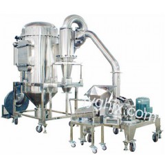 工作原理及特点:本产品整套低温磨粉机由料仓、机械粉碎机、引风机、旋风器、液氨(用户自配)等组成。原理:该低温磨粉机系统以液氨为冷源,被粉碎物料通过冷却在低温下实现脆化粉碎状态后,进入机械粉碎机腔内通过