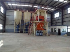 简易型干粉混合生产线一般是由一个干粉搅拌机和两根螺旋输送机及成品仓、全自动包装机组成的干粉混合小型简易生产线。单批次搅拌1-5吨,日产30-200吨。干粉混合简易生产线的干粉搅拌机属于卧式的搅拌机,具