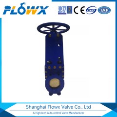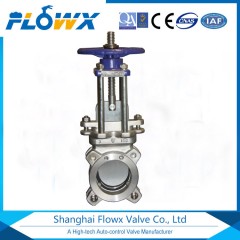 插板阀又称手动刀型闸阀,刀形闸阀它是一种闸板与阀座始终紧密接触密封的阀门,其原理是闸板上开有一个通径大小的圆口,通过闸板启闭使得闸板上圆口跟通径做完全脱离和相吻合的动作。此阀门的优点在于阀体通径无凹槽