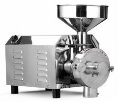 无尘食品药材低温粉碎机工作原理:水冷粉碎机(活动锤式粉碎机)利用活动小锤子高转速旋转和利用离心力甩打的形式,使被粉碎物经锤头和边沿齿轮相互冲击、摩擦等综合作用获得粉碎。本机结构简单、坚固、运转平稳、粉