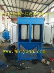 粉末回收滤筒除尘器工作原理:含尘气体进入除尘器灰斗后,由于气流断面突然扩大,气流中一部分颗料粗大的尘粒在重力和惯性力作用下沉降下来;粒度细、密度小的尘粒进入过滤室后,通过布朗扩散和筛滤等综合效应,使粉