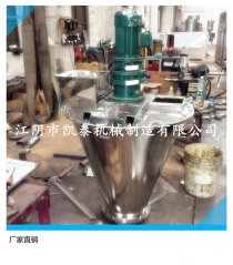糖粉双螺旋锥形混合机是一种新型高效、高精度的混和设备。该机采用一套电机及摆线针轮减速机组成公转和自转,利用长短搅拌螺杆回转运动和两螺杆自转运动相结全的原理,使比重配比悬殊的物料达到理想的混合度,混和时