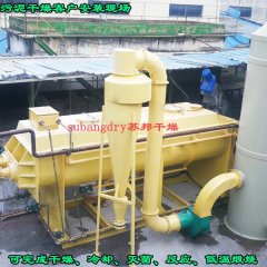 产品概述:KJG空心轴上密集排列着楔型中空桨叶,热介质经空心轴流经桨叶。单位有效容积内传热面积很大,热源是水蒸汽,也可以是液体型:如热水、导热油等。间接传导加热,没有携带空气带走热量,热量均用来加热物
