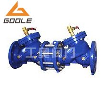 HS41X-A型倒流防止器由两个隔开的止回阀和一个液压传动到泄水阀组成,**个止回阀阀体内装有过滤网。由于止回阀的局部水头损失,中间腔内的压力始终低于入水口的压力。这个压差驱使泄水阀处于关闭状态,管路