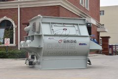 卧式干粉搅拌机的工作原理:各种成分的物料按配方比例经过计量后进入混合机,物料在带状螺旋叶片的推动下进行混合。外螺带将物料从一端向另一端推动,内螺带则使物料向相反的方向运动,里层物料被推到一侧后由里向外