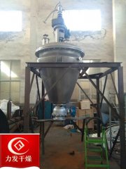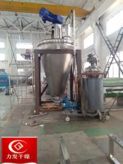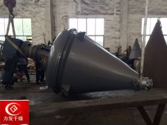 一、概述:内加热单锥真空混合干燥机是一种利用螺带将物料旋转提升及圆锥夹套、空心螺带内同时通入传热介质(如热水、导热油、蒸汽等),使加热后物料从四周提升并从中间下落,快速不断的循环翻转,并通过筒体内抽真