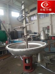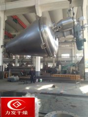一、概述:内加热单锥真空混合干燥机是一种利用螺带将物料旋转提升及圆锥夹套、空心螺带内同时通入传热介质(如热水、导热油、蒸汽等),使加热后物料从四周提升并从中间下落,快速不断的循环翻转,并通过筒体内抽真