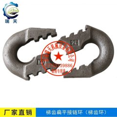 产品名称:矿用高中度圆环链用扁平接链环1、别名:锯齿环、梯齿环、弧齿环2、产品参数:规格节距试验负荷KN拉伸负荷KN破断负荷KN18*6464±0.6330330-340≥37022*8686±0.9