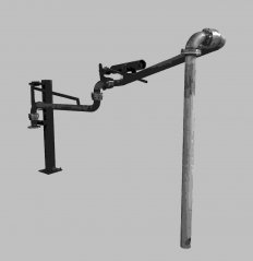 流体装车鹤管是专业的液态气体密闭装卸鹤管,其结构由上下两相装卸管道构成,上部为气相,下部为液相,由五个旋转接头在包络范围内自由动作,实现鹤管接头与罐车接头水平对接。适用于原液化石油气、液氨、液氨、二甲
