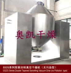 SZG双锥回转真空干燥机为双锥形的回转罐体,罐内在真空状态下,向夹套内通入蒸汽或热水进行加热,热量通过罐体内壁与湿物料接触。湿物料吸热后蒸发的水汽,通过真空泵经真空排气管被抽走。由于罐体内处于真空状态