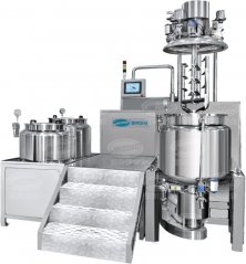JRGD-P系列高效均质乳化机底部装配GD型高效能均质乳化器,在全密闭真空状态下内循环工作,适合于生产多种类型的膏霜、乳液制品,相比传统的各种乳化设备能大幅提高生产效能和制品质量。JRGD-P型高效均