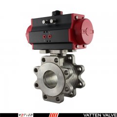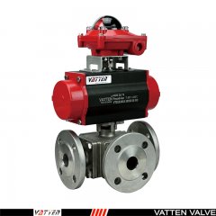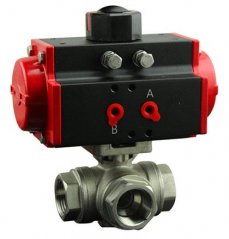不锈钢气动三通球阀可分为L型和T型。L型三通球阀用于介质流向的切换,能使相互垂直的两个通道连通(如流向图L型)。三通球阀一般采用两阀座结构,亦可根据用户要求采用四阀座结构。四阀座密封三通球阀具有造型美