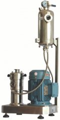 ZKE/中新宝高剪切混合均质机使用皮带轮按照1:3的比例变速,转速可达9000rpm,通过变频调节后转速可达14000rpm,是普通国产均质机转速的3-4倍,立式分体式三层管线式高剪切均质机符合卫生级