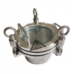 不锈钢化工级高压快开人孔是指用来观察容器及设备内部物料情况的装置。属安全附件,应定期检查。按形状分为圆形和长方形视镜。按用途分为窥视和照明视镜。按结构分为带衬里和不带衬里、带颈、带罩、双层安全、保温、