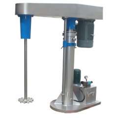 高速分散机高速分散机主要多用于涂料生产,即我们又称涂料分散机。该分散设备主要由液压系统、主传动、搅拌系统、导向机构和电控箱五部分组成。其通过锯齿状分散盘高速旋转,使物料呈涡流旋转状态,锯齿状分散盘剪切