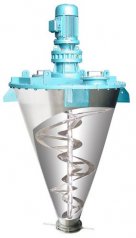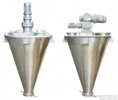 锥形螺带混合机锥形螺带混合机是由容器、螺旋搅拌叶片、转动部件、筒盖、出料阀等组成,螺旋叶片一般做成双层或三层,外层螺旋将物料从两侧向中央汇聚,内层螺旋将物料从中央向两侧输送,形成对流混合,从而达到对物