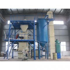 干粉砂浆成套生产设备主要由原料罐(水泥储罐)、烘砂设备、配料装置、混合机(无重力混合机)、干粉包装机(阀口包装机)、除尘器(脉冲袋式除尘器)、输送及提升机(螺旋输送机、斗式提升机)组成。干粉砂浆成套生