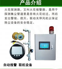 粉尘火花报警系统_管道火花报警器--细节包含:(销售热线:182-6181-1833)1.供电:220VAC探测数量:2个2.熄灭数量:1组3.联动输出点:2组继电器,无源,常开或常闭4.模块自检:自