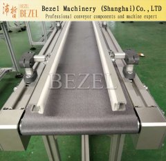 转弯皮带机扇形皮带加装专用的防跑偏滚轮(轴承外加聚甲醛POM)或者在输送带的外侧高频焊接导向筋使输送带运行在专用的导轨中,辊筒采用专用的锥型包胶辊筒,广泛应用在食品、饮料、电子、烟草等行业,我们可以选