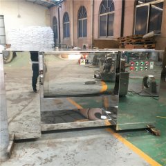 CH系列槽型混合机产品概况本机为全不锈钢卧式槽型混合机,在制药、化工、食品工业中用于混合物粉状或糊状的物料,使不同比例主辅料混合均匀。本机全采用不锈钢材质,浆叶与桶身间隙小,混合无死角,搅拌轴两端设有