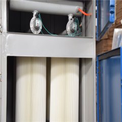 滤筒简介滤筒是由一定长度挺括的滤料折叠成褶,首尾粘合而成的星形过滤筒。滤筒无笼骨,安装简便。粉尘易积聚,难于清灰,适于浓度≤5g/m粉尘的过滤除尘,过滤风速不宜>0.6m/min。水平安装,下层