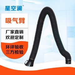 连接方式:固定托架连接(由弹性胶圈密封)设备长度:2m、3m、4m、5m(5m以上需配备延长托臂,长度可达10m)。外管材料:进口PVC钢丝风管,抗腐蚀,耐温1400C。柔性吸气臂优点:其良好的拉伸悬